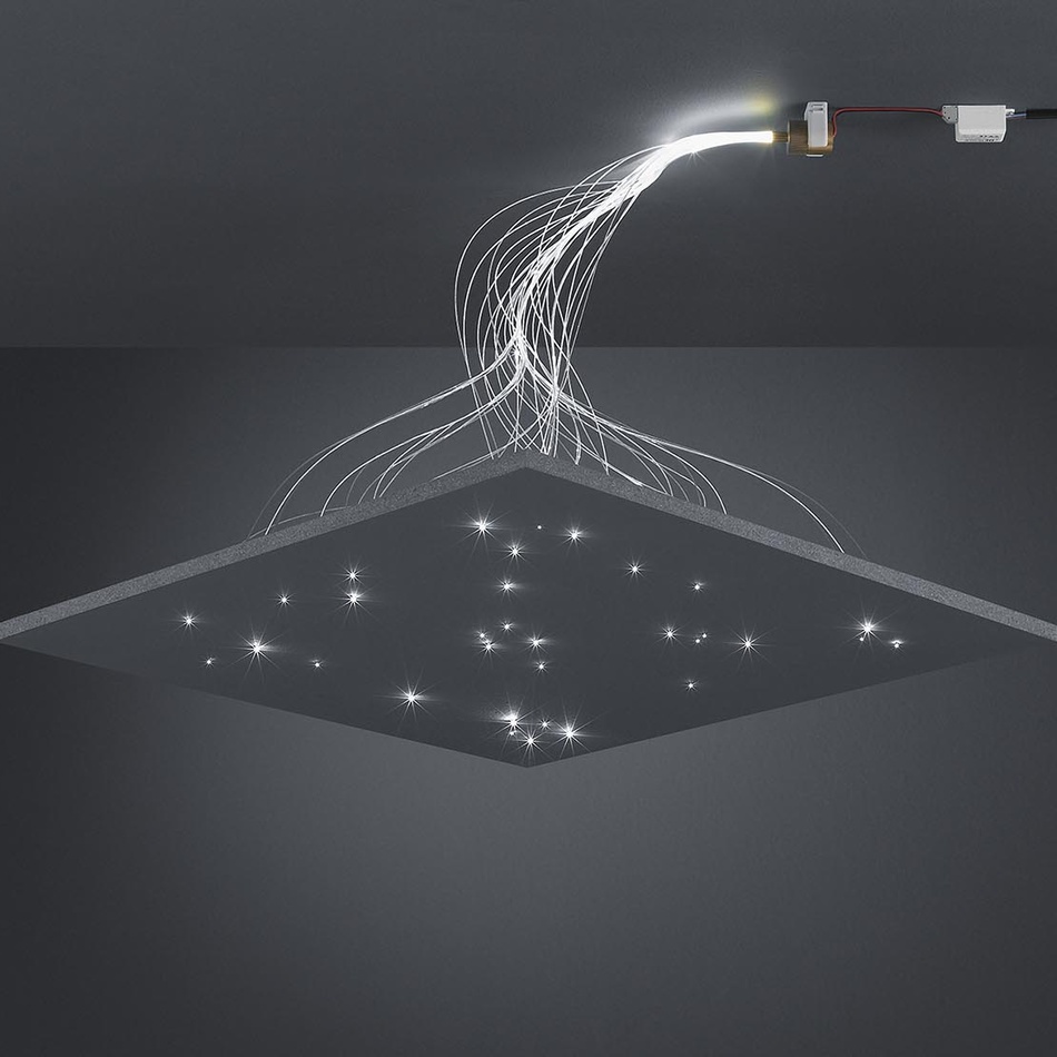 Ob Sternenhimmel mit Sternenflimmern oder Sternschnuppen, ein Blick in die Weite der Galaxien oder farbige Lichtpunkte mit und ohne Bewegung, die Fasertechnik schafft für ihre Anwender Möglichkeiten, die sich mit anderen Lichtquellen nicht erzeugen lassen. Auch die Installation ist einfach und an jeder abgehängten Decke möglich. Durch die ausbleibende Erhitzung der Fasern kann diese Form der Beleuchtung sowohl in Holz, wie auch in tapezierten Decken integriert werden. Lediglich der Projektor muss so platziert werden, dass für ausreichend Belüftung gesorgt ist. Nicht nur im Innenbereich, sondern auch Outdoor hat sich die Fasertechnik durchgesetzt und dem Kunden neue Möglichkeiten zur kreativen Umsetzung von Beleuchtungsideen geboten. Der geringe Installationsaufwand, der einfache Betrieb ohne eine Erweiterung der Stromquellen im Objekt, sowie die zahlreichen Möglichkeiten verspielter und klassischer Effekte sorgen für ungetrübte Begeisterung, wie auch eine präzise Inszenierung verschiedenster Flächenbeleuchtungen und visueller Besonderheiten.