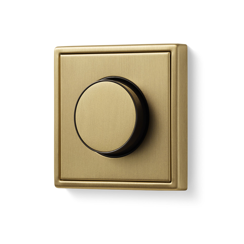 Die neue Gestaltung für Drehdimmer-Abdeckungen wirkt noch harmonischer, die Bedienung ist einfacher. Das flachere Design steht für Drehdimmer, Drehzahlsteller, Potentiometer und Drehregler zur Verfügung. In den Schalterprogrammen aus Echtmetall ist die Vorderseite des Drehknopfs nun aus demselben Material. Darüber hinaus übernehmen die gebürsteten Varianten Messing Antik und Messing Classic ihren speziellen Schliff nun auch für den Drehknopf.