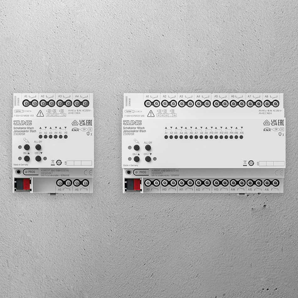 Die KNX Schalt- und Jalousieaktoren in den Ausführungen 6-fach, 16-fach und 24-fach erhalten ein umfangreiches Firmware-Update. Es bringt zahlreiche Funktionen und erleichtert die Erstinbetriebnahme. Mit dem Update auf die Version 2.0 erhalten die Aktoren unter anderem eine Heartbeat-Funktion. Hierdurch senden die Aktoren zyklisch ihre Erreichbarkeit über den KNX Bus. Das Intervall ist individuell in der ETS einstellbar. Setzt ein Heartbeat aus, meldet beispielweise der KNX Server JUNG Visu Pro einen Fehler. Probleme in der Automatisierung können so deutlich schneller ermittelt und rechtzeitig behoben werden. Für die Funktionen der KNX Schalt- und Jalousieaktoren sind eine neue ETS-Datenbank und ein Firmware-Update der Geräte erforderlich.