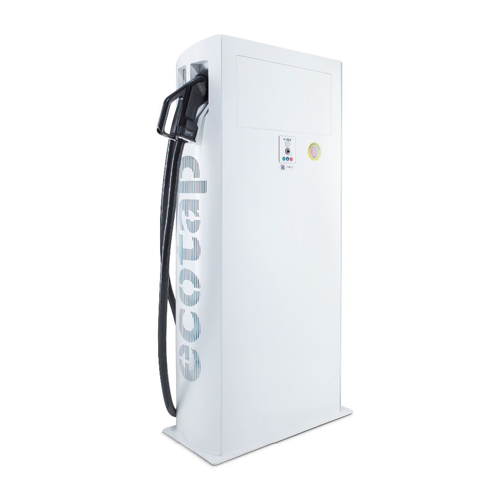 Das Ecotap® DC 30 Schnellladegerät kann für alle Elektrofahrzeuge mit CHAdeMO- oder CCS-Anschluss verwendet werden. Das Ladegerät hat eine Gleichstromleistung von bis zu 30 kW. Die tatsächliche Ladekapazität hängt von der verfügbaren Leistung ab.
