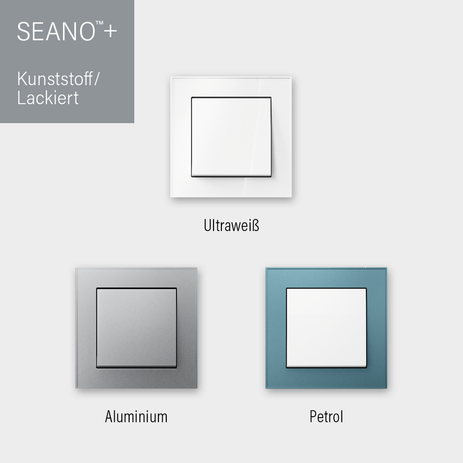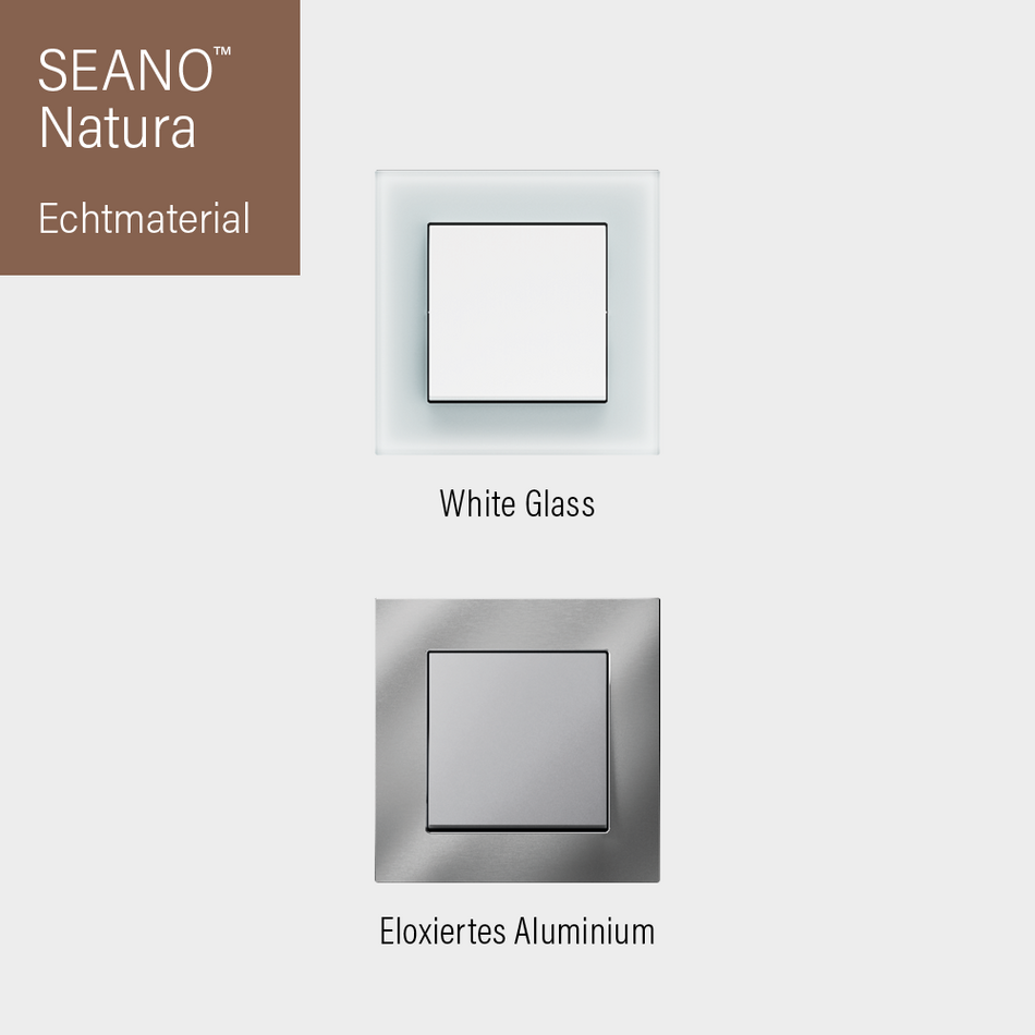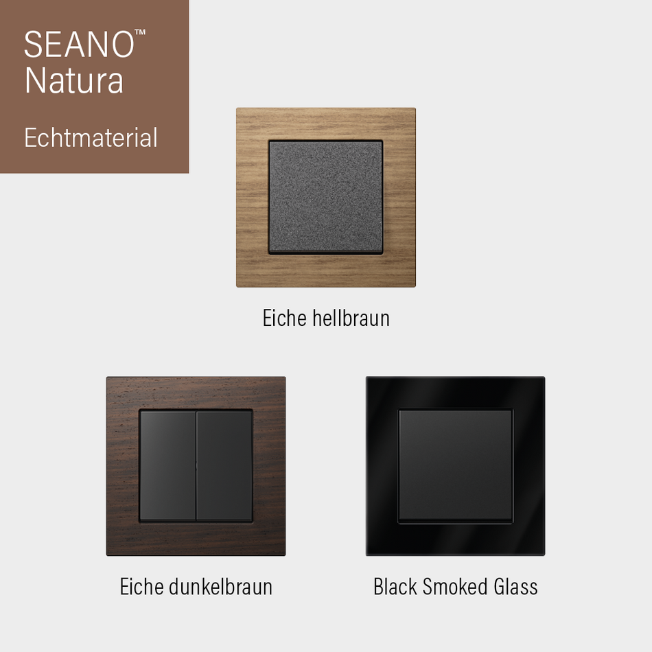 Die neue Schalterserie SEANO™ von Legrand ist maßgeschneidert für den deutschen und österreichischen Markt, auf eine mühelose Installation optimiert und nachhaltig produziert. Die drei Designlinien SEANO™, SEANO™+ und SEANO™ Natura decken neben konventioneller auch eine Smart Home-Installation ab. Das geradlinige SEANO™-Design bietet bereits im preislichen Einstiegssegment eine hohe Produktqualität und zeitgemäße Auswahl. SEANO™+ und SEANO™ Natura können mit einer besonders großen Vielfalt in Luxusqualität aufwarten. Im Mittelpunkt der edlen Reihen SEANO™ Natura stehen die hochwertigen Echtmaterialien White Glass und Black Smoked Glass, Aluminium sowie helle und dunkle Eiche.