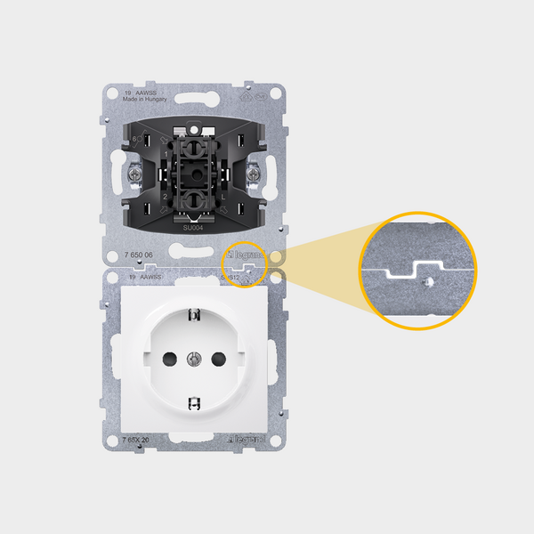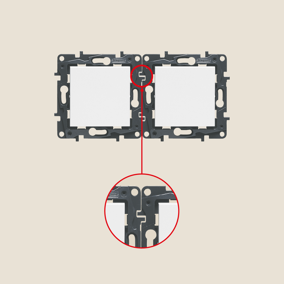 Plexo™ New garantiert eine vereinfachte Installation dank seines konkurrenzlosen Platzes für die Verdrahtung und seines werkzeuglosen, beweglichen Einrastmechanismus. Mit der gleichen Referenznummer für Aufputz- und Unterputzdosen können Sie Plexo™ New sowohl horizontal als auch vertikal installieren.