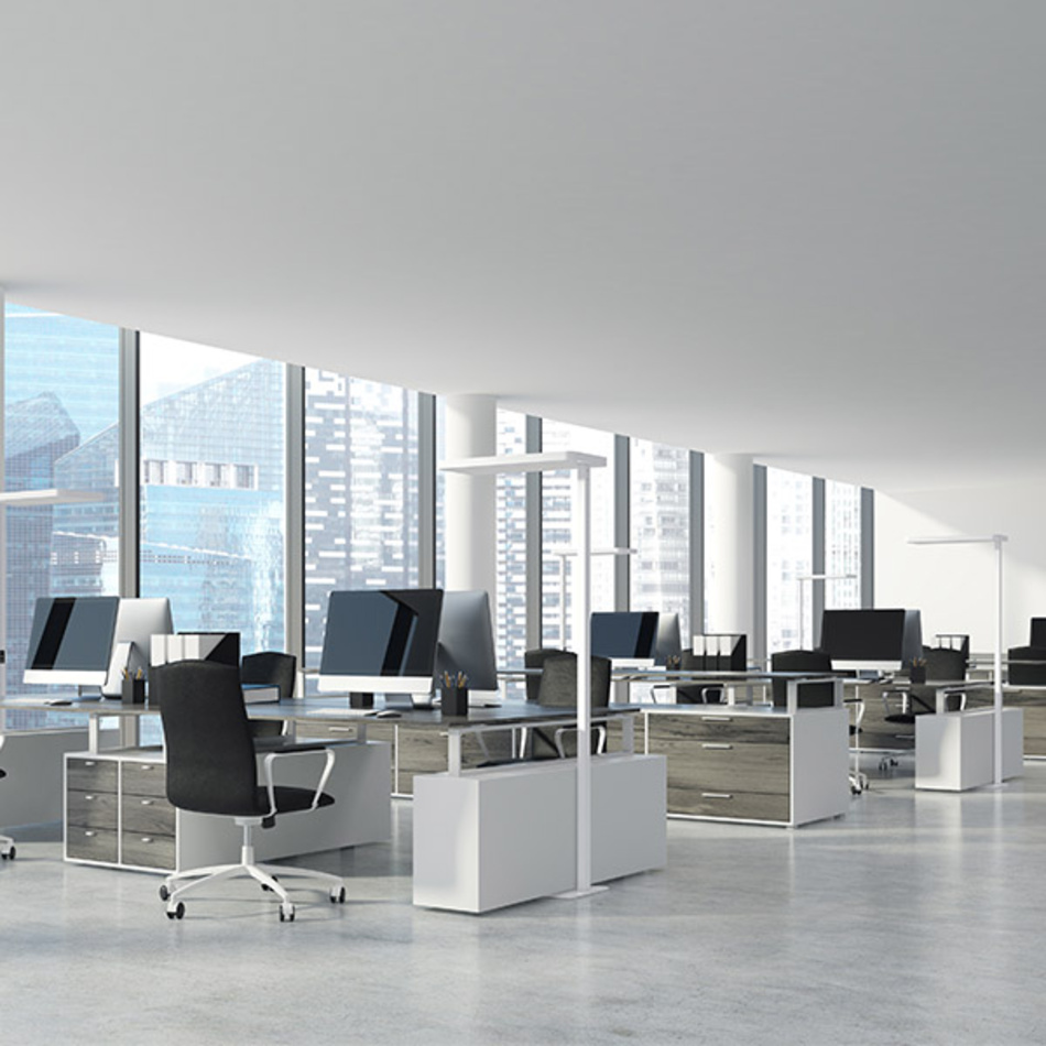 - LED Stehleuchten für Einzel- und Doppelarbeitsplätze