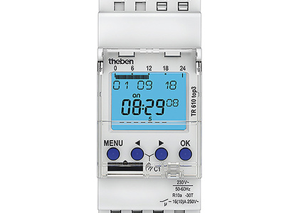 Hohe Ströme erfordern spezielle Kontakte. Theben verwendet neben Silber-Zinnoxid (AgSnO2) eine Kombination aus zwei Kontakten, die nacheinander schließen: den Wolfram-Vorlaufkontakt. Der voreilende Kontakt besteht aus hochohmigen und sehr beständigen Wolfram. Er fängt den Einschaltstrom ab und begrenzt ihn zugleich. Der niederohmige Hauptkontakt bleibt so von Einschaltspitzen unbelastet. Theben setzt diese Relais bei den digitalen Zeitschaltuhren TR 609 top2 S und SELEKTA 175 top2 sowie bei den Performance-Bewegungsmeldern theLuxa P und dem Präsenzmelder theRonda P ein.